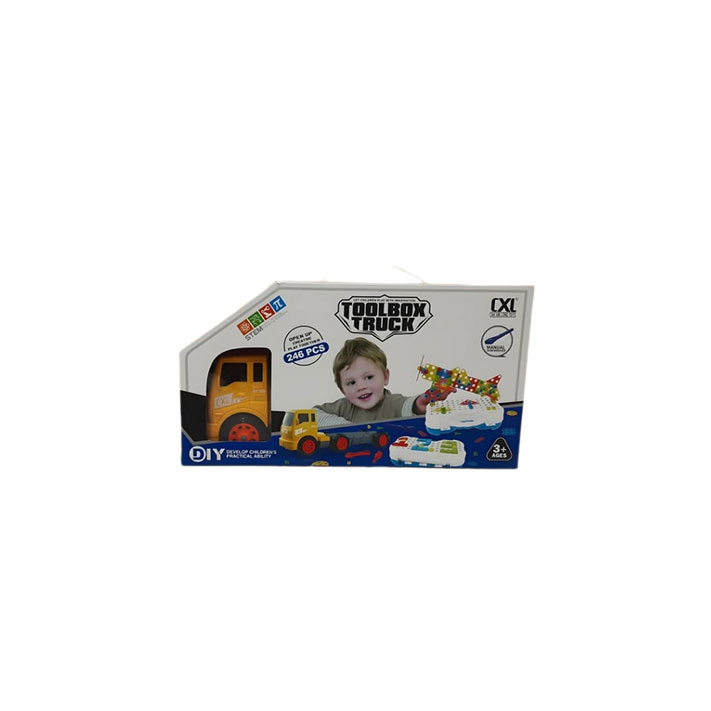 مجموعة ألعاب على شكل شاحنة كبيرة تحمل داخلها صندوق أدوات ضخم، وتحتوي على 246 قطعة من الأدوات وملحقات التركيب، منها: مفكّات، براغي، صواميل، ألواح تركيب، وأجزاء لبناء أشكال متعددة.